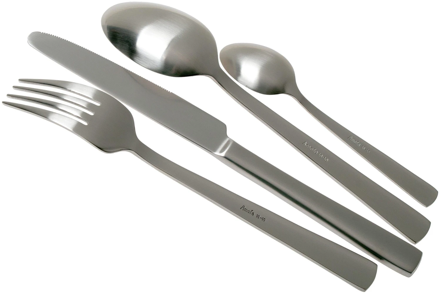 El Amefa Ventura es un modelo fuerte, intemporal y elegante en términos de diseño y una adición absoluta a una mesa moderna. La cubertería está realzada con un acabado mate. Fabricado en níquel cromado, también conocido como acero inoxidable 18/10. Como tal, esta colección es muy resistente a la corrosión (no se mancha fácilmente). Los productos de esta gama son aptos para el lavavajillas.