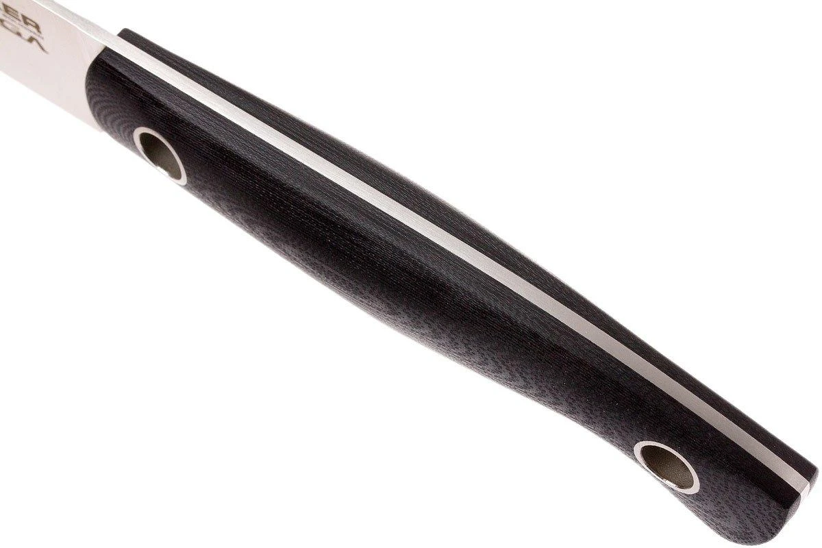 Este cuchillo multiusos Böker Saga es perfecto para cortar ingredientes pequeños. Piensa en cortar rodajas de tomate y salchichas o cortar una naranja por la mitad. Debido a los dos agujeros característicos en el mango, este cuchillo multiusos es también un espectáculo para los ojos.