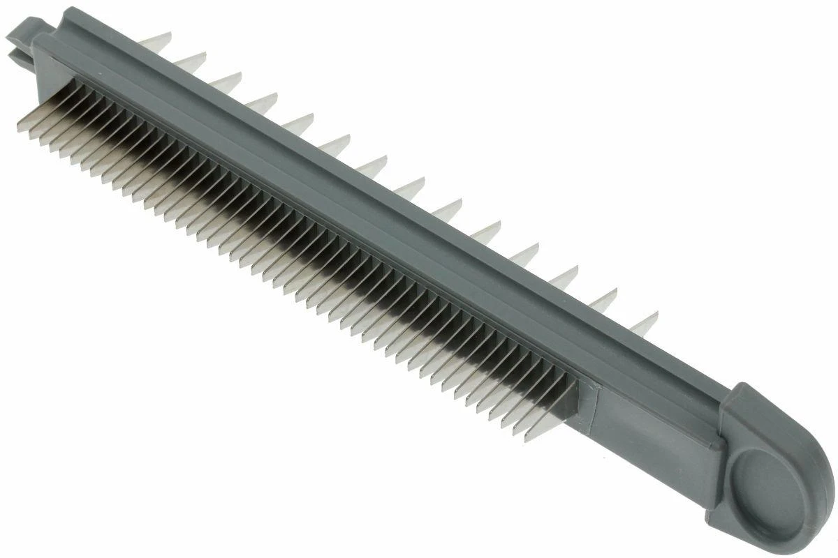 Esta hoja juliana de doble cara te permite hacer fácilmente tiras de tu pepino, o espaguetis de tu calabacín. La hoja doble tiene un lado con un grosor de corte de 2 mm y un lado con un grosor de corte de 7 mm. La hoja es adecuada para las mandolinas DeBuyer Swing y viene con un estuche de almacenamiento.