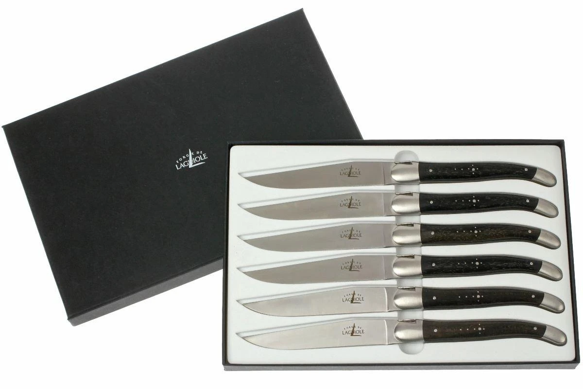 Forge De Laguiole T22MINTCNOI Negro Micarta Juego De Cuchillos Para Carne Pulidos De 2 Piezas