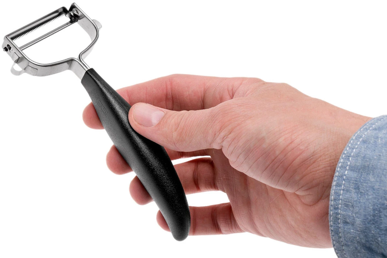 El pelador GEFU Pomodoro tiene una hoja dentada de acero japonés. Con este cuchillo podrás pelar fácilmente tomates, pimientos y kiwis. En un momento dado se puede quitar la piel de un tomate sin tener que hervirlo primero. El pelador japonés está hecho de acero de alta calidad. La hoja está ligeramente dentada. Por ello, no te costará ningún esfuerzo eliminar la piel. La hoja inferior es fina para garantizar que los restos de comida se peguen poco a la hoja.