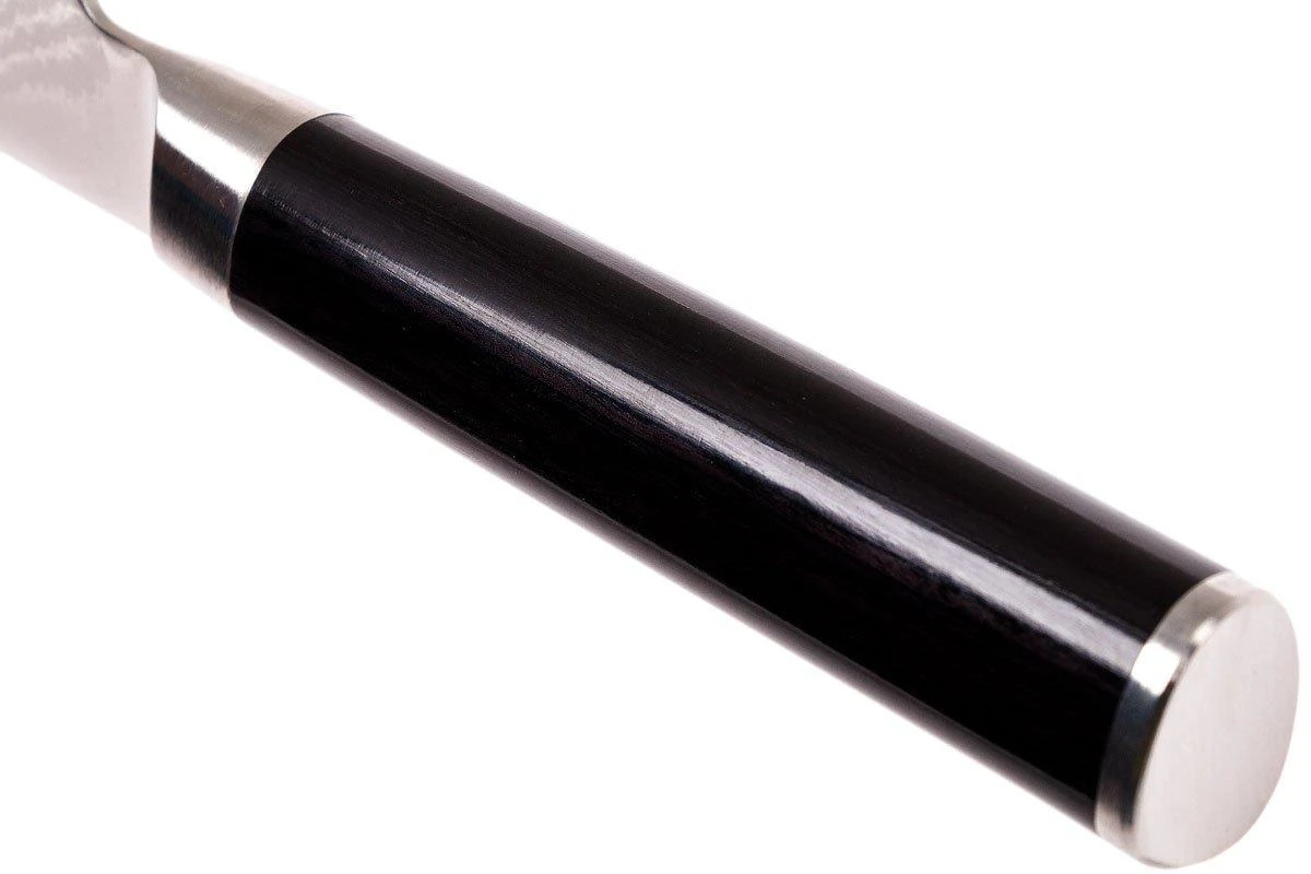 La colección Shun Classic está compuesta por preciosos cuchillos de cocina con acero de damasco de 32 capas. El núcleo VG-MAX se encarga de ofrecer unas propiedades de corte inigualables. Los mangos están hechos de madera de pakka laminada y tienen una forma asimétrica. Esta colección de cuchillos es una de las más extensas del mundo. Por su aspecto y por sus excelentes propiedades de corte, este cuchillo es un placer absoluto para la vista e increíble de usar. Cuchillo Santoku de la colección Shun.