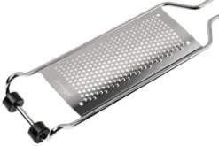 El rallador Microplane Premium Classic es un accesorio delgado, práctico y muy sostenible en tu cocina. El rallador está hecho de acero inoxidable resistente y mejorado con una funda protectora. El rallador Premium está mejorado con un mango suave al tacto, lo que hace que se sienta muy bien en la mano. La base está reforzada con dos pies de goma antideslizantes. Muy práctico es poner el rallador en su estación de trabajo.