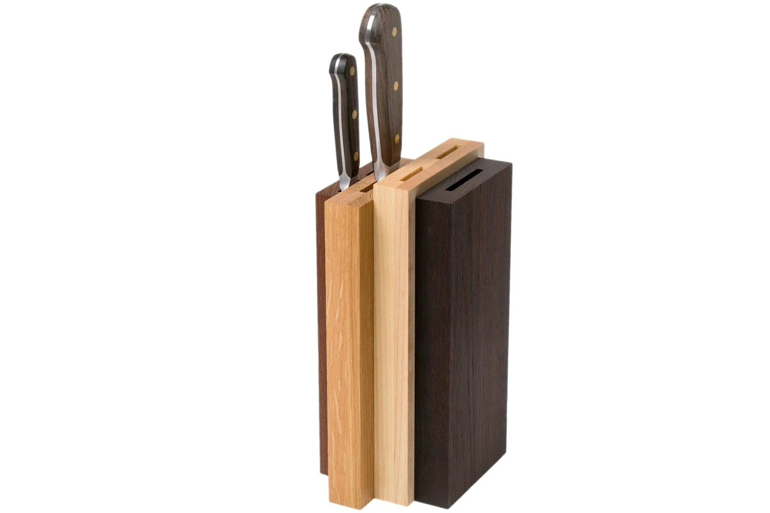 El Wüsthof Crafter hace honor a su nombre. Son cuchillos de trabajo realmente resistentes. El mango es de roble ahumado y, por tanto, resistente al agua. Es preferible limpiar los cuchillos a mano y no en el lavavajillas. Esto no beneficia al bello y oscuro color de la madera ni al afilado de la hoja. El mango se siente muy bien en la mano y la virola se extendió para proteger los dedos. Debido a la virola completa, el cuchillo está perfectamente equilibrado y, por lo tanto, es ideal para trabajar. Las cachas están aseguradas con remaches de latón para dar ese aspecto auténtico.