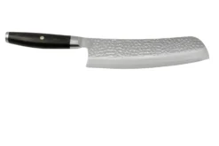 El cuchillo de chef Tsuchimon de Yaxell es un elegante cuchillo de cocina japonés de hoja larga. La hoja martillada es lo suficientemente grande como para llevar a cabo todas las grandes tareas de corte en la cocina. Sin embargo, el cuchillo es fácil de usar gracias a su correcto equilibrio y a su afilado filo. Este cuchillo de chef es ideal para todo tipo de verduras, carne y pescado.
